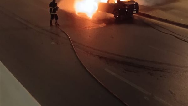 اشتعال سيارة ملاكي أسفل كوبري جهينة بأكتوبر