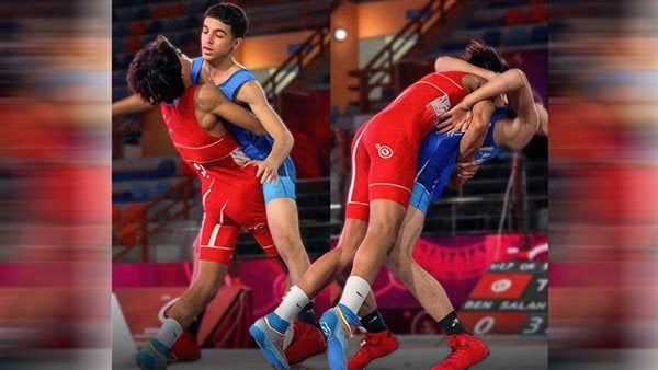 لم يكن تتويج حسونة مجرد فوز تقليدي، بل جاء عبر لقطة فنية مميزة خلال نهائي المصارعة الرومانية أمام منافسه التونسي، حيث نفّذ حركة مدروسة قلب بها الموازين لصالحه.